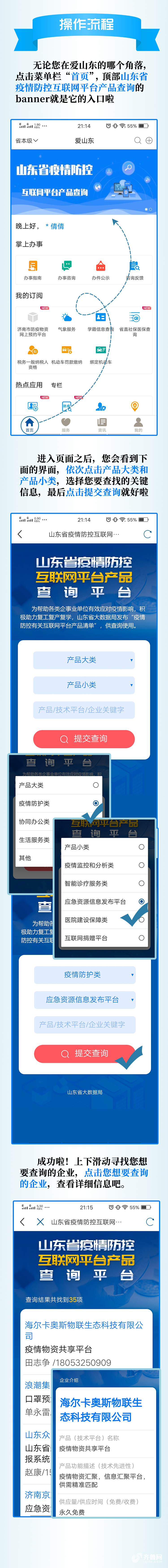 “爱山东”第一时间将两批疫情防控有关互联网平台产品清单进行数字化转型,推出“山东省疫情防控互联网平台产品查询”专栏,为群众提供了更好地移动政务服务,为坚决打赢疫情防控阻击战提供了数字化支撑,体现了“爱山东”在抗击疫情宣传行动中的门户担当。