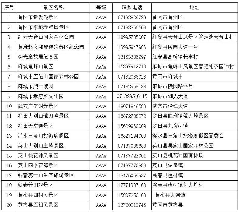 黄冈市A级景区名单