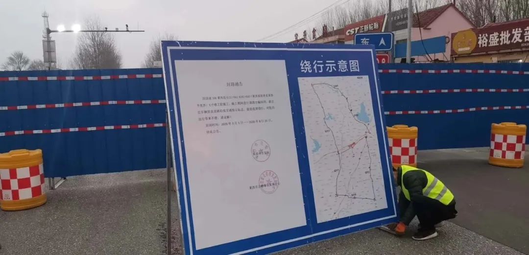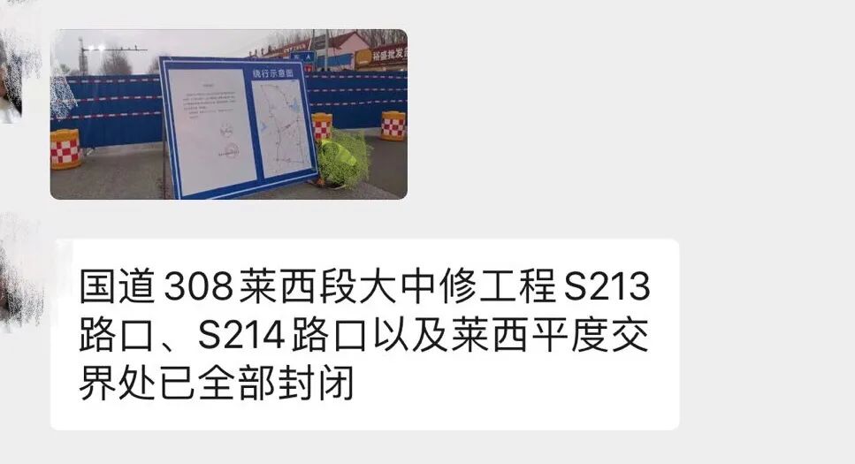 G308莱西平度交界处等多处路段封闭施工