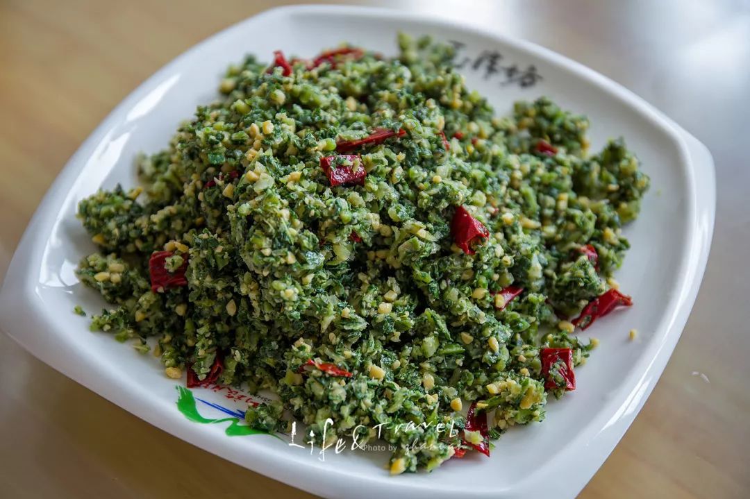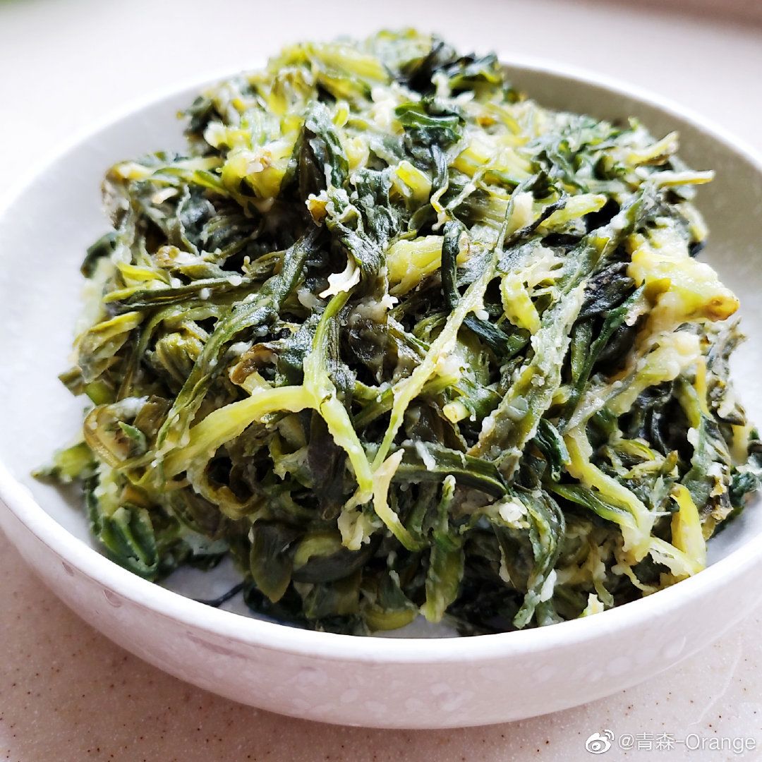 新鲜的苦菜可以沾上甜面酱生吃,也可以开水焯过后,加上豆面做成渣腐!虽然看起来不太美观,但却苦中带香,确实是春季养生必吃的一道好菜!