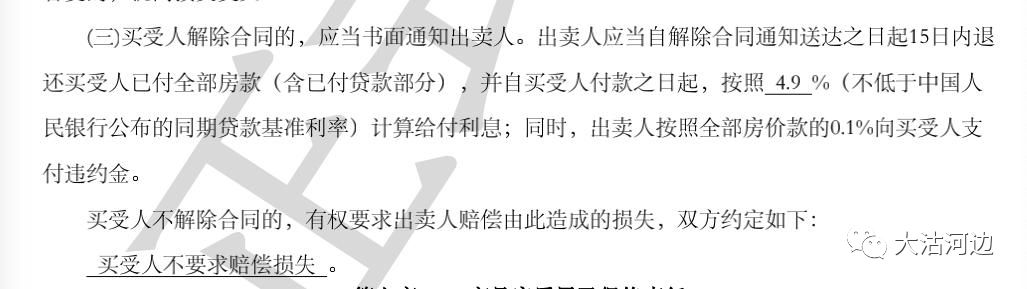 “我把有疑问的地方都做了标记。”记者从杨先生提供的合同范本中看到,房子规划用途、面积、容积率等有经主管部门批准变更的,出卖人未在10日内书面通知,买受人有权解除合同,有权要求出卖人赔偿损失,损失的约定为“买受人不要求赔偿损失”。而买受人违约时,则需要支付违约赔偿。“为什么他们违约不需要赔偿,业主违约就要赔偿?”