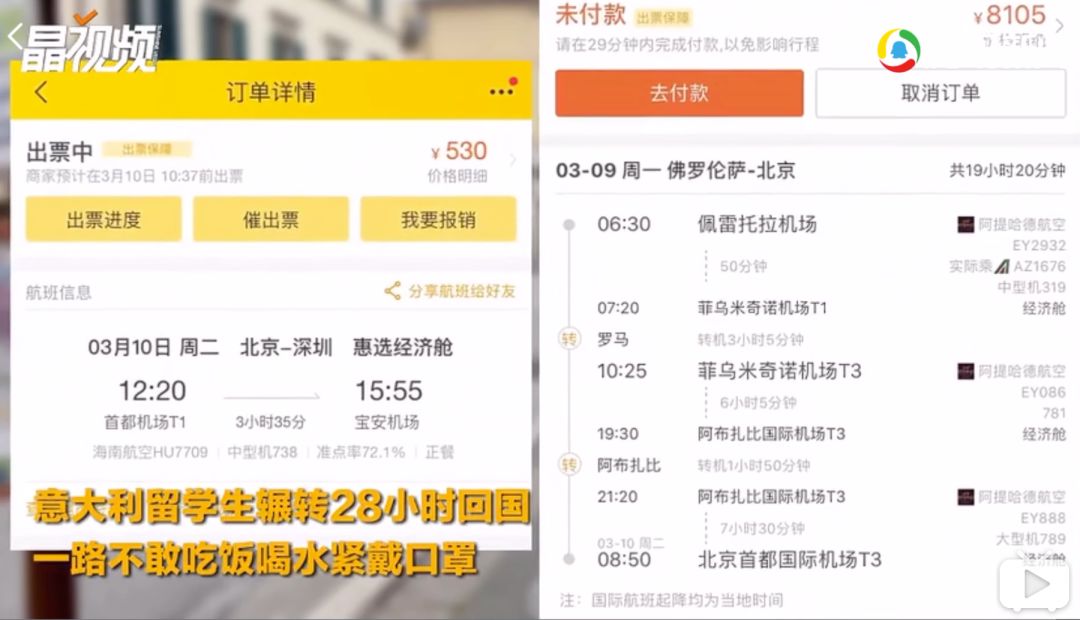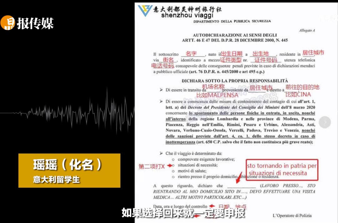 回国前,她先在意大利住的地方自我隔离20天,确保身体并无大碍。由于当地医疗过载,并且出现居家隔离死亡的案例,无依无靠的她怕极了,这才决定回国。购买机票前,她主动向相关部门填报信息,还将注意事项逐一分享给朋友们,生怕大家漏了步骤。