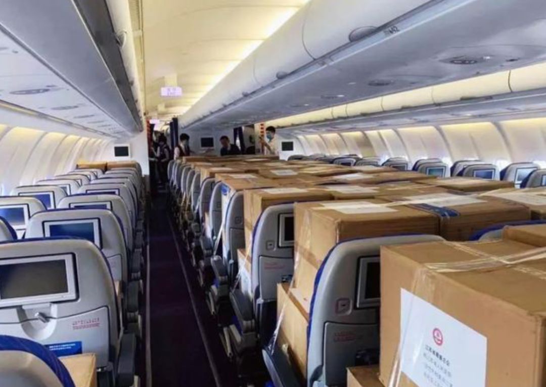 前段时间,一架“神奇”的航班从肯尼亚首都飞往广州。飞机上的经济舱几乎没有乘客,但每个座位上却放着塞满口罩的箱子。