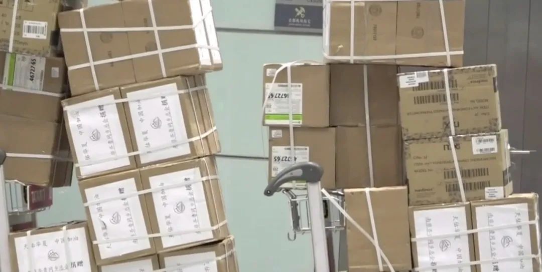 这些物资由海外华人华侨集体捐赠。为了尽量多地购买口罩,他们带着现金上街,挨家挨户询问,几乎买空了全城的口罩。这场行动中,机组工作人员也当上了搬运工,让口罩成为经济舱里的「乘客」。它们回到祖国,被送到医护人员手中。