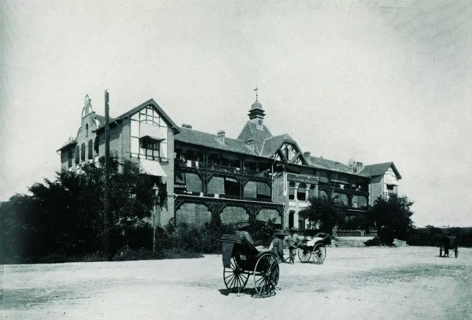 德占时期的植物实验场(今中山公园)大门处的人力车