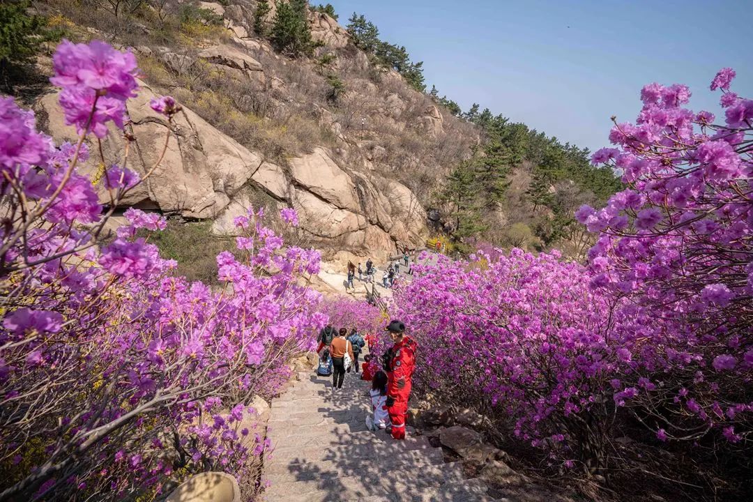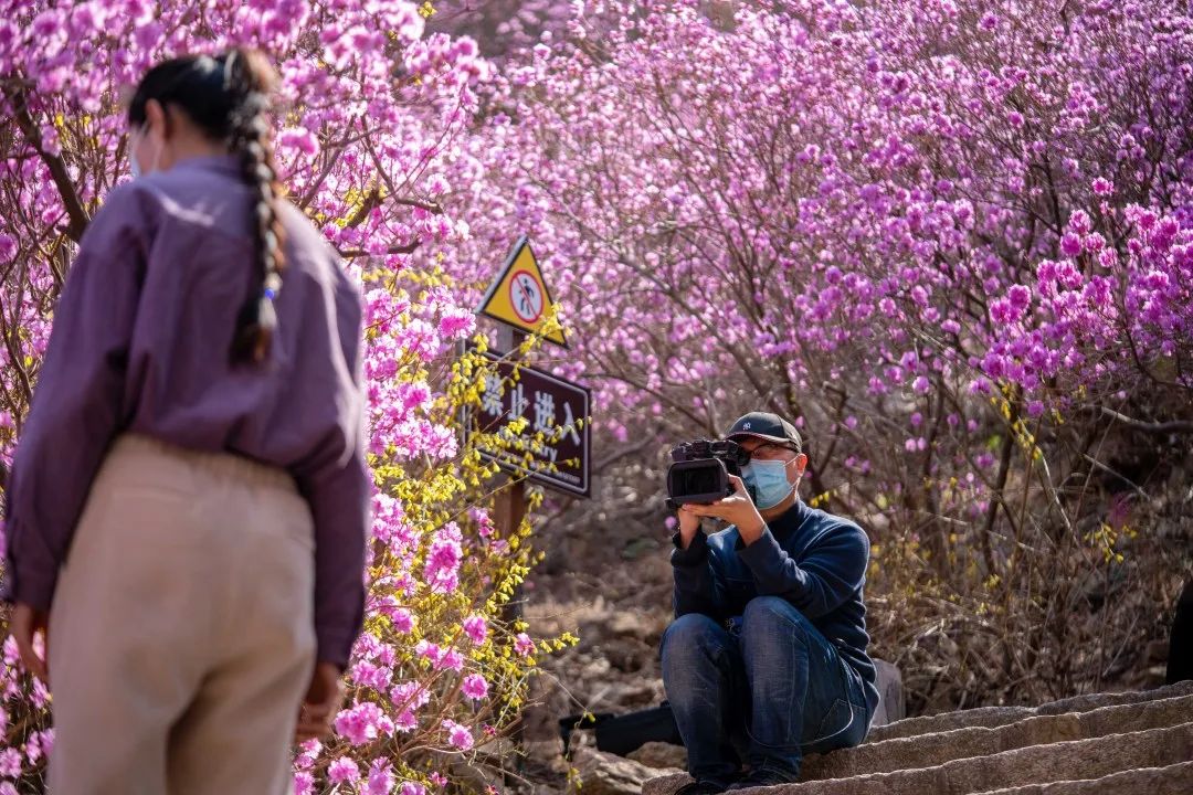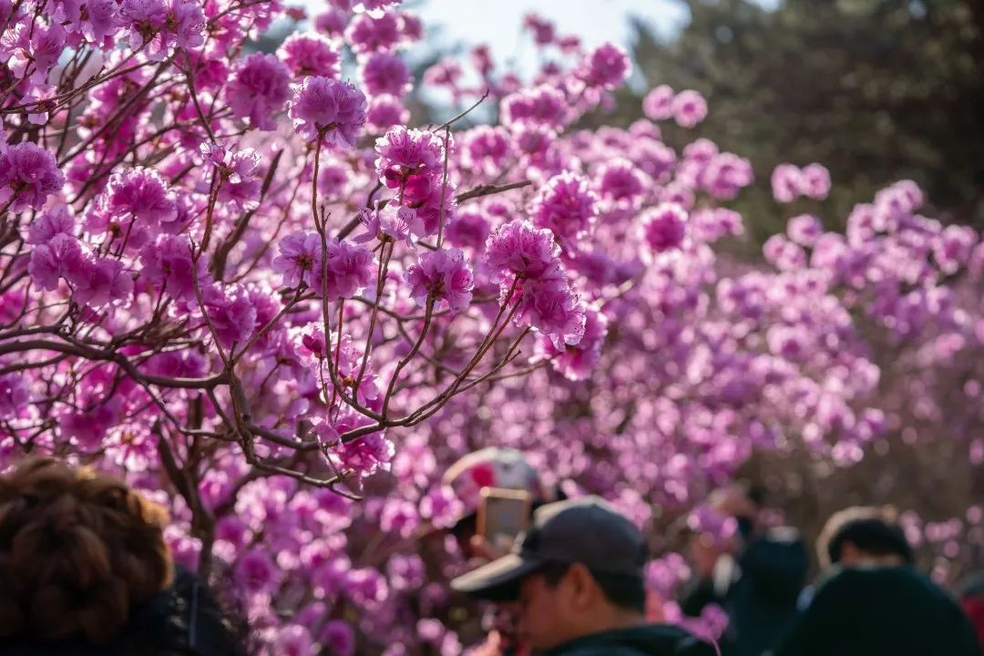 Tips:今年景区的杜鹃花期比往年提前一周左右,目前,第一批品种的蓝荆子已进入初花期,预计本周进入盛花期,清明节前后将迎来最佳赏花期。