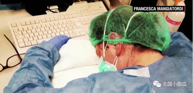 “太累了,连续工作12小时后,她坐着睡着了。”
