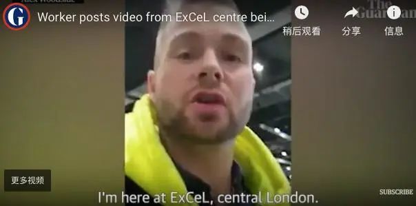 ·英国工人拍摄视频,介绍ExCel展览中心改建情况。(视频截图)