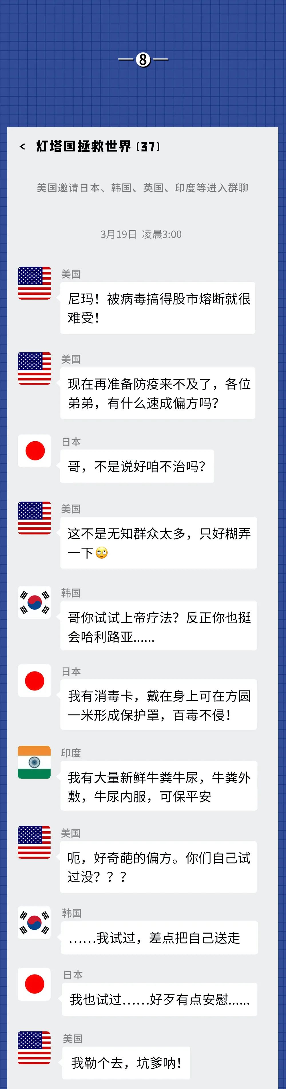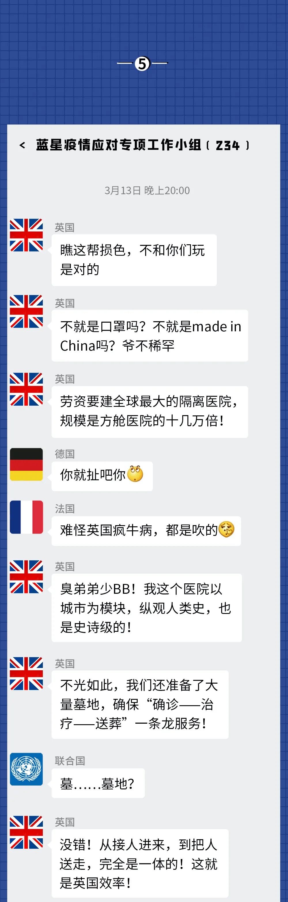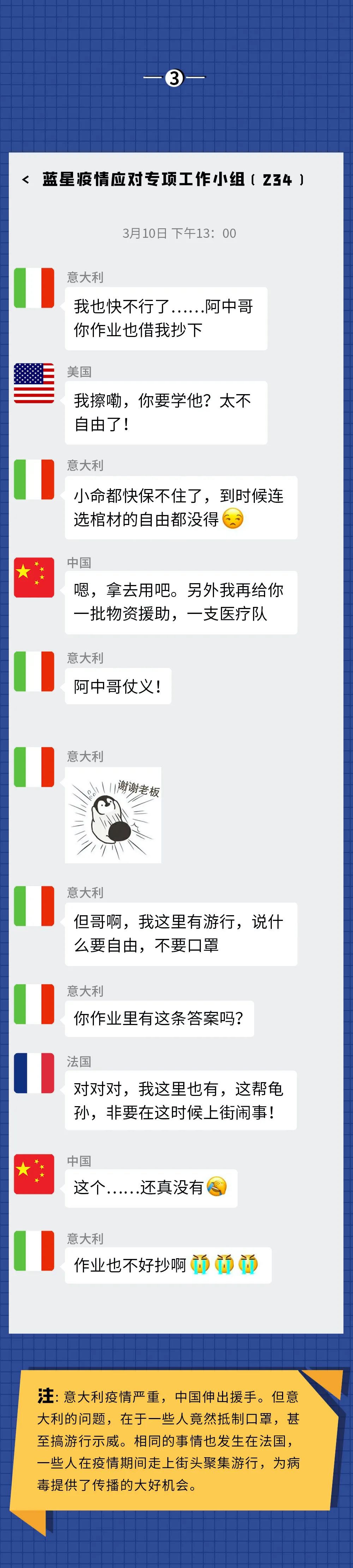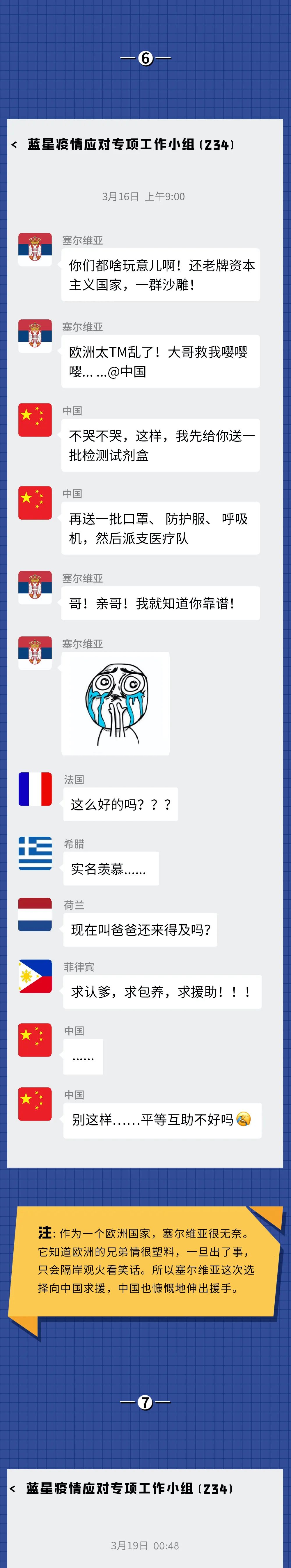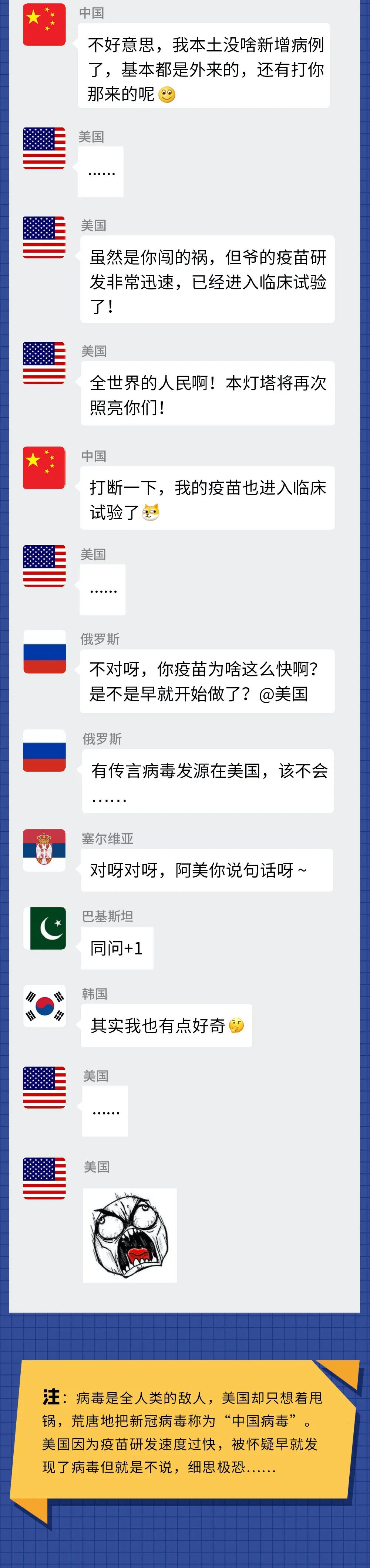 反而是曾经被群嘲的中国,靠着广大医护人员和全体国民的努力,以及“呼吁戴口罩”“居家隔离”“方舱医院”“通行码”等科学有效的方法,逐渐控制了国内疫情,然后开始援助其他国家一起抗击病毒。