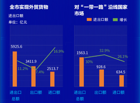 进出口总额5925.6亿元,增长11.2%。