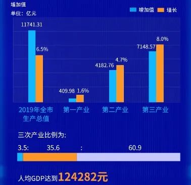 2019年全市生产总值11741.31亿元,