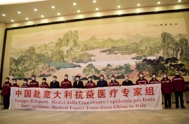 3月12日晚,由中国国家卫生健康委和中国红十字会共同组建的抗疫医疗专家组一行9人携31吨医疗物资抵达罗马,驰援意大利抗击新冠肺炎疫情。