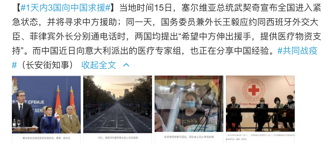 在我国疫情刚刚得到缓解,还远远未到掉以轻心的时候,我们为现在这个相对较好的局面付出了无法计数的代价。但当各国疫情开始后,中国人还是选择伸出援手。