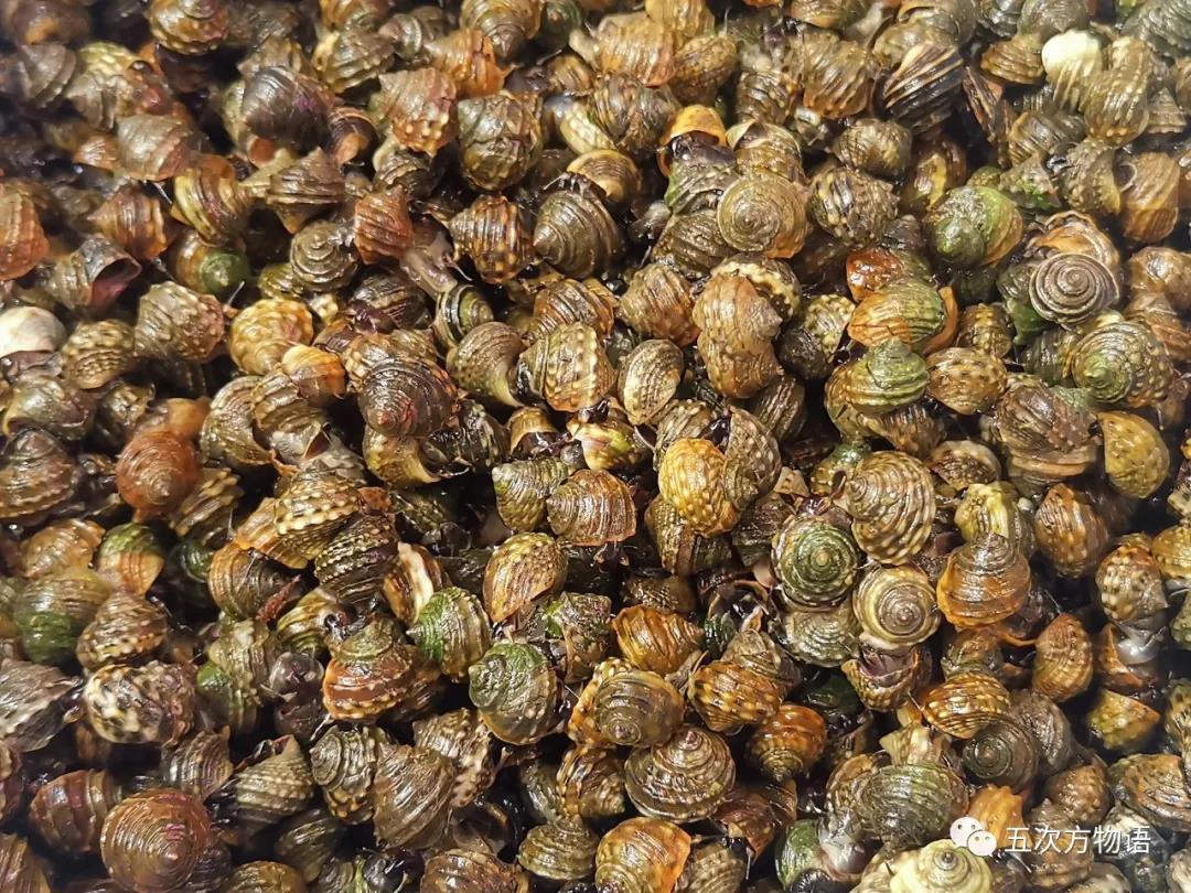 很像朝鲜花冠小月螺/Lunella coronata coreensis,但从外壳瘤状结节的特征来看,应为产于浙江以南的粒花冠小月螺/L. coronata granulata,非本地货。以前这俩是同种不同亚种,模糊一下无妨,现在好像都独立了。其壳口有鼓起的石灰质口盖,须用绣花针才能挑出肉来,肉略苦。