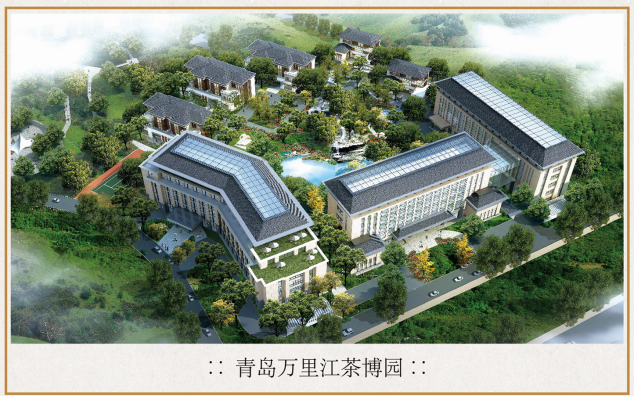 万里江茶博园建成于2014年,占地3万余平方米,是由青岛万里江茶业有限公司投资3.2亿元打造的以北方茶文化为内涵,集茶科研、茶观光、茶体验、茶文化展示、茶交流、茶传播为一体的茶文化主题园。主要建设版块有北方茶树抗寒品种繁育中心、北方茶树种植技术研究中心、茶叶质量安全研究中心、茶叶职业技术培训中心、茶文化展示中心、茶叶加工观光体验中心、万里江茶博物馆。