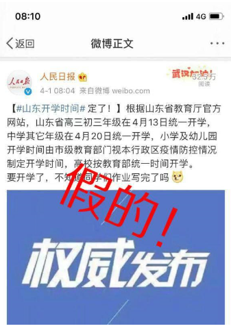 4月1日,网上流传着两张“山东开学时间”的截图,记者第一时间向省教育厅有关人员进行了核实,证实这是不实信息。