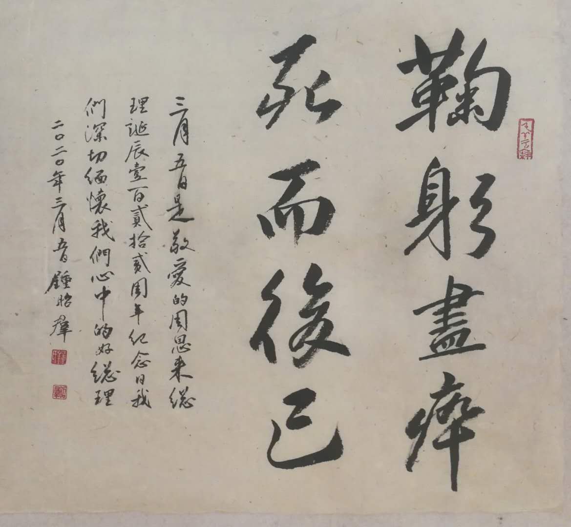 青岛新闻网4月2日讯 庚子新春,一场突如其来的新冠肺炎疫情肆虐中华大地。这是一场特殊的战“疫”,一场没有硝烟的战争。钟昭群先生牢记使命,不忘艺术为人民的初心,积极泼墨挥毫,投入到全国人民共战疫情、共克时艰的斗争中。他创作抗“疫”作品上百幅,以此鼓舞士气,坚定信念,将文化的力量化作疫情防控的强大助力。疫情期间,他还为老年人开设空中课堂,推送多种类型的公益性公共课程。借助人性化的网络教学,充分发挥老年书法爱好者的个性化技能,使宅家的老年人感受到学习书法艺术的快乐。