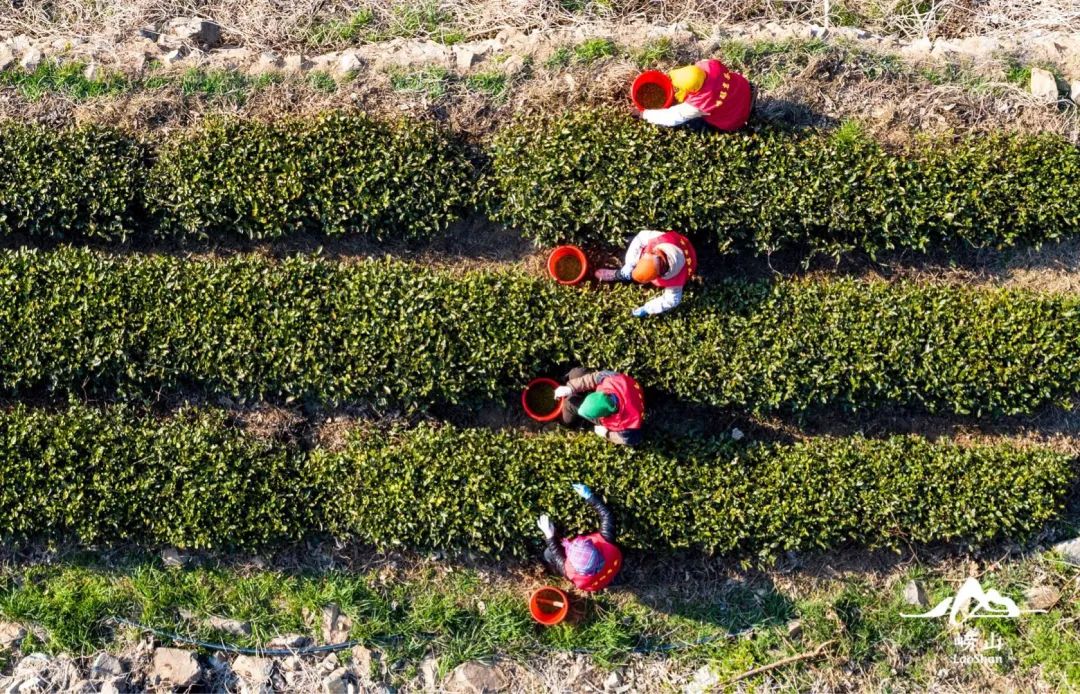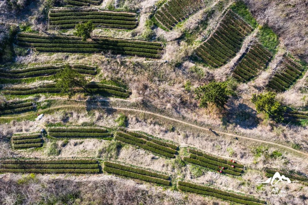 以王哥庄街道为例,其中青山村、长岭村、返岭村、晓望村等都是崂山茶的重要产地,这些种满茶叶的梯田,沿着山脉层层叠叠,星罗棋布,与红色的屋顶形成对比,偶尔还有村民在其中行走,好似“世外桃源”。