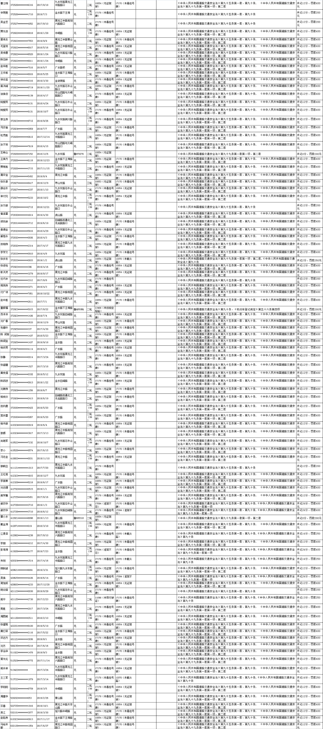 交警李沧大队根据《中华人民共和国行政处罚法》第三十一条和《公安机关办理行政案件程序规定》第一百六十八条的规定,现对部分机动车驾驶人拟做出处罚决定。具体人员公布如下:
