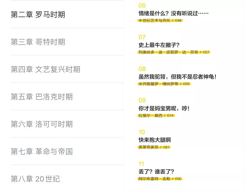 来看看普通艺术史和《大话西方艺术史》的目录对比——