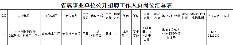 近日,省人力资源社会保障厅发布山东水利技师学院、青岛农业大学2020年公开招聘工作人员简章。