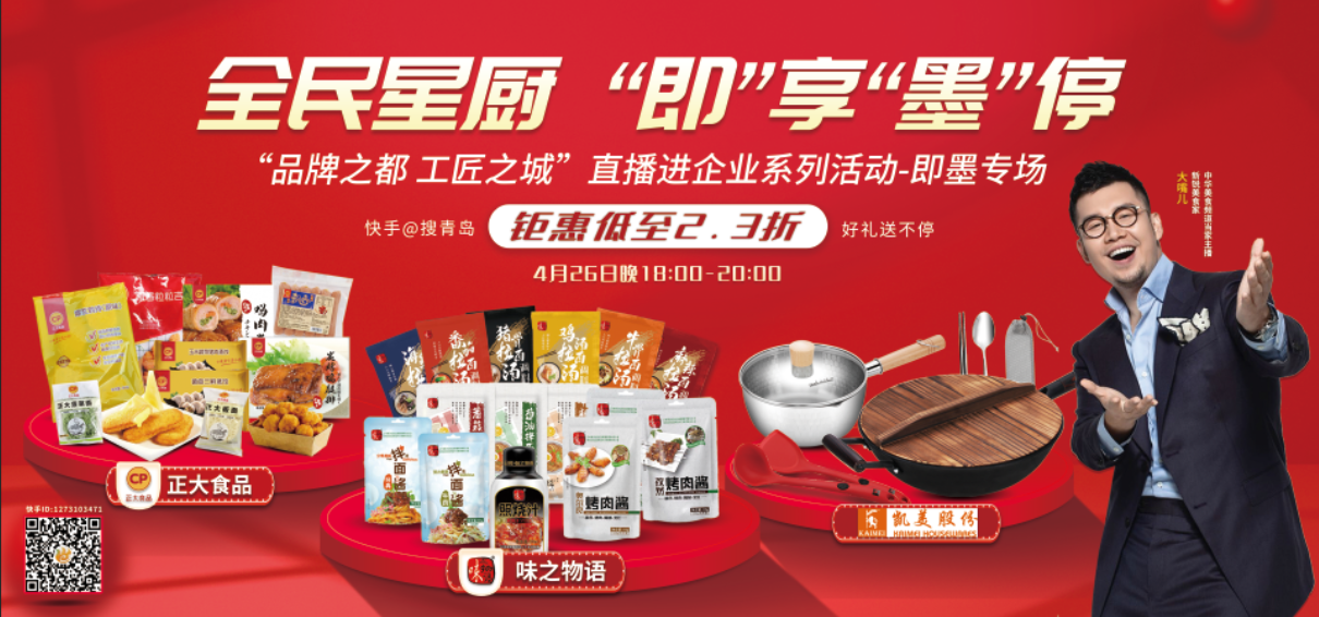 此次直播以“全民星厨 ‘即’享‘墨’停”为主题,正大食品、日辰食品、凯美股份三家企业强强联手,共同打造属于青岛制造的“暖心暖胃餐”,更有多款当家产品超低价回馈,直播现场好礼送不停!