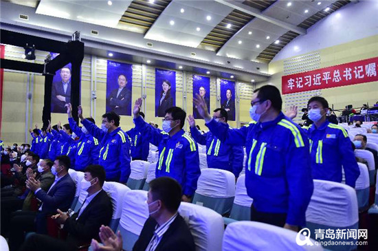 青岛市委宣传部,青岛市总工会、交通运输局、科技局、黄岛区委宣传部等部门的领导,山东港口集团及有关部室领导,山东港口青岛港集团领导及集团管干部共同聆听报告会,青岛港广大职工通过观看视频直播的形式,走近了这个敢想敢干、勇攀科技高峰的团队。