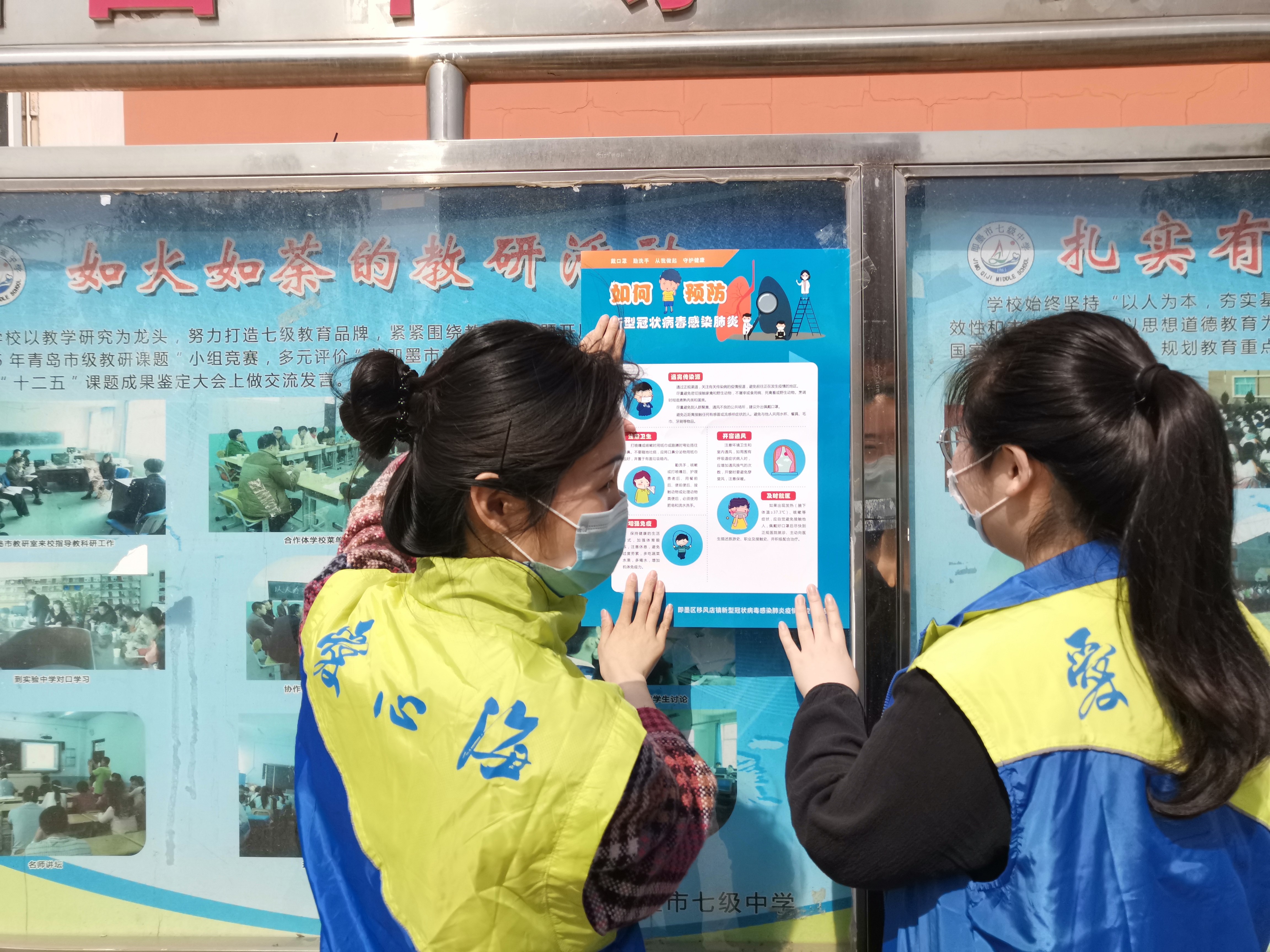 同时,进行开学演练、防疫宣传画张贴等工作,为学生放心走进校园贡献青年们的力量。
