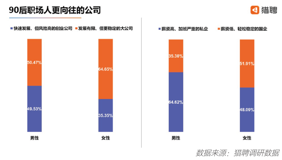1 ) 90后更加现实求稳,同样注重个人感受和公司文化