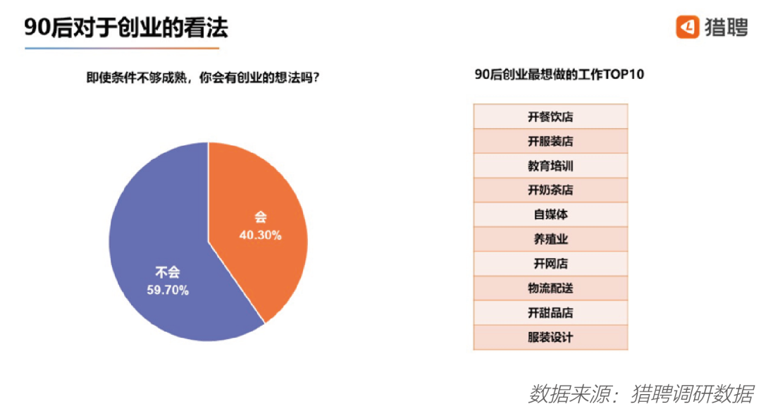 如今,“为自己打工”是不少年轻人推崇的一种工作理念。在今年存在全国性疫情的情况下, 90后对创业持什么态度?本次调研结果显示,即使条件不够成熟,仍有 40.3%的 90后抱有创业的想法。显然仍有不少 90后有比较热血的一面,他们对未来发展有自己的考量,充满激情。