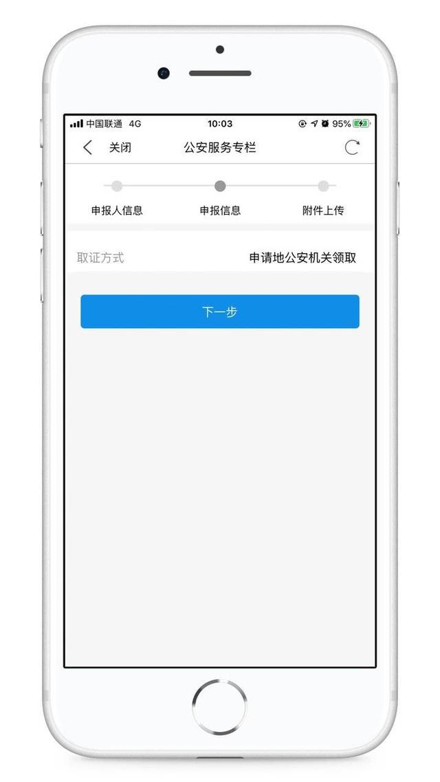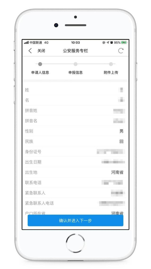 根据要求逐步填写个人信息并上传相关附件,即可完成该业务线上办理的部分: