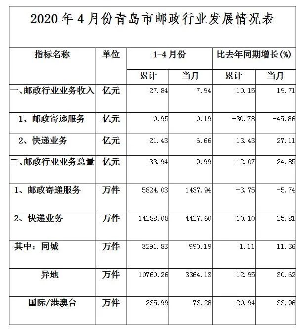 青岛快递业务量相关数据出炉!