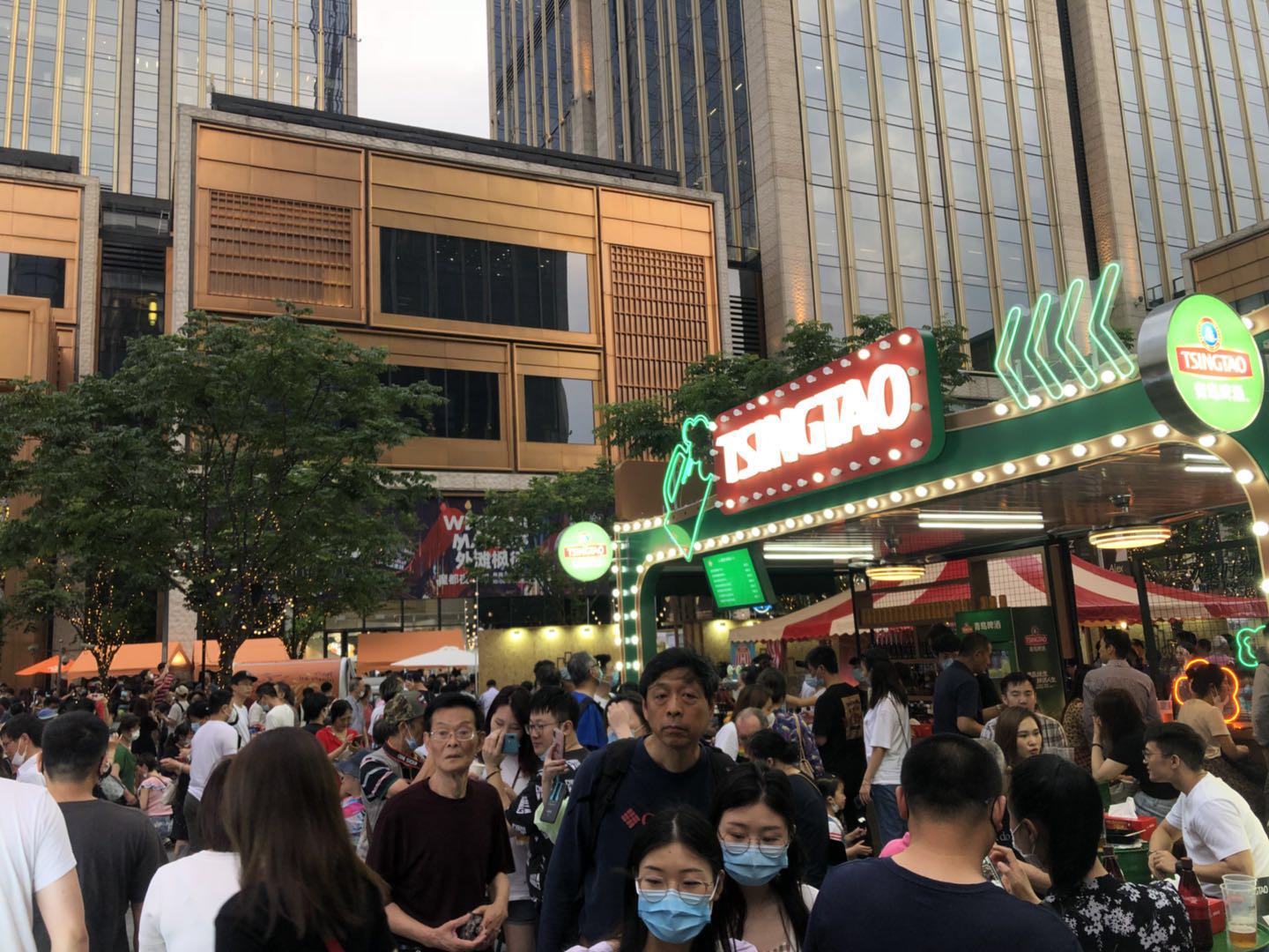 “喝着青岛啤酒边吃边逛,这样逛着夜市喝啤酒,跟平时在家或者饭店感觉不一样,别有一番风味。”老蔡咬了一口大肉串子,在呷一口手中的青岛啤酒,脸上的表情十分满足。“主要是酒新鲜,品种也丰富,大夏天很解暑。”老蔡笑称,因为有了青岛啤酒,夜市都能多逛几回。