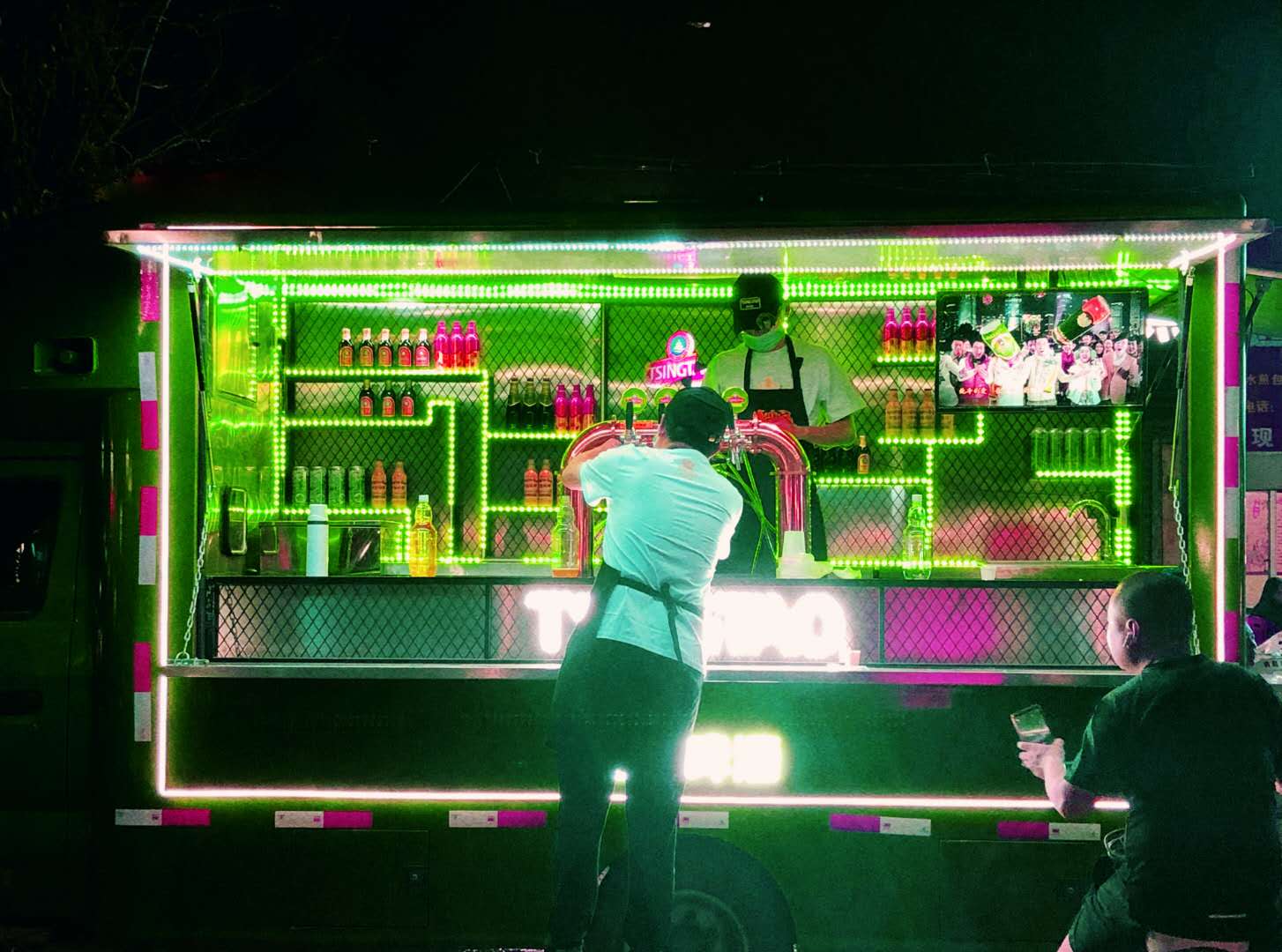 不仅仅是在上海,青岛啤酒的移动酒吧还在全国200多个夜市步行街摆摊亮相。辽宁锦州的北镇庙街夜市,边吃边逛边喝青啤,几乎成了标配;湖南长沙好润佳广场夜市摊,老爸喝青啤,女儿买轻零,要是车停在附近,后备箱里还要装上一箱。