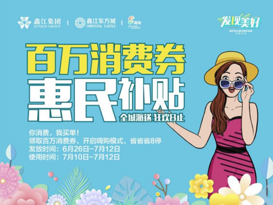 在刚刚过去的五月里,鑫江东方城百万消费券活动共派发消费券总金额超百万,覆盖人群上万人,实实在在为消费者买单。夏日狂欢季,鑫江东方城8周年店庆百万消费券第二季席卷而来。6月26日-7月12日,领取百万消费券,开启嗨购模式,省省省8停!