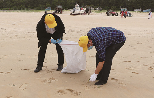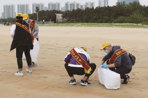 北起清泉栈桥,南到天越湾,市区各界青年200余人齐聚海滨,清理、捡拾海滩及海边森林公园的垃圾。志愿者们也积极宣传环保意识,引导游客们做出正确的文明行为,劝阻游客不随意抛弃垃圾、遛狗不牵绳等不文明行为,以及向游客宣传文明知识,增强文明意识,提升文明素质,号召全民动手,共同维护环境卫生,用清洁海岸线的行动实践着“劳动美”,成为海边一道靓丽的风景线。