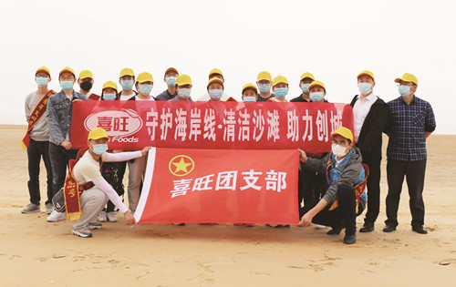 为提升青年团队的社会责任感,喜旺集团团支部积极带领青年干部组织各类志愿活动,积极投身于社会公益事业,除参与了此次的清洁海滩活动,还组织、参与了抗震救灾、植树节栽种树苗、重阳节慰问老人、为孩子们提供“梦想书单”、设立环卫工休息站、疫情捐赠等一系列的公益活动,而这些活动得到了广泛关注,并起到了良好的引领示范作用。喜旺始终用实际行动宣扬尊老爱幼、爱护环境的传统美德,传播社会正能量,以此来回报社会。