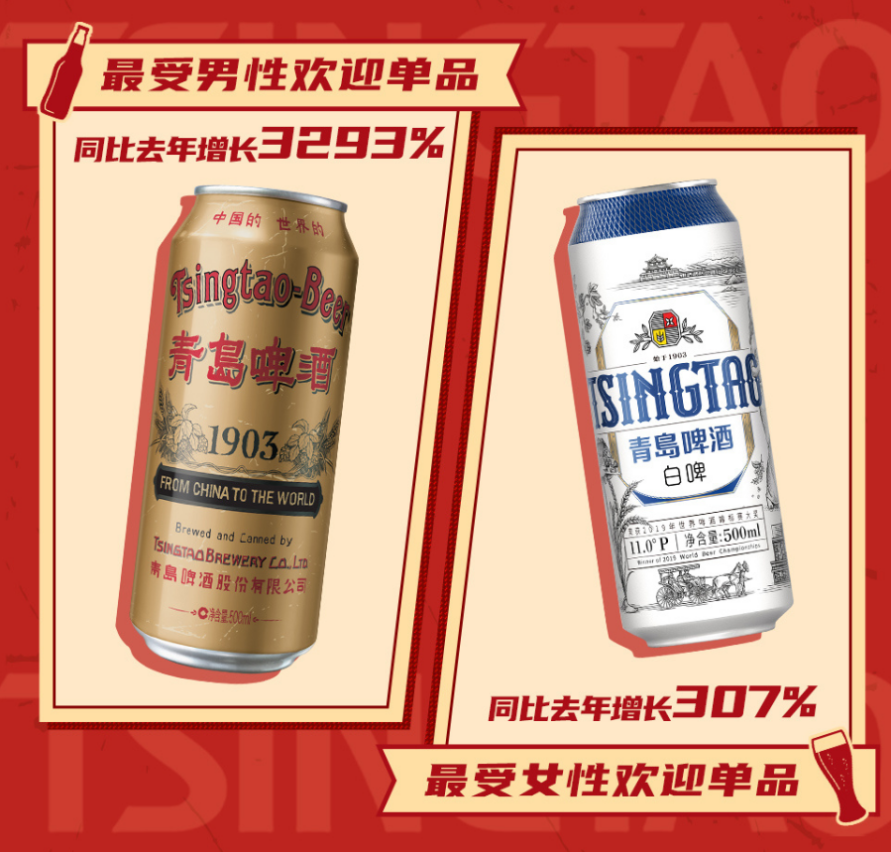 不仅如此,青岛制造展现出“强势领跑”的品牌风范。青岛啤酒在“ 6·18”期间稳居京东、天猫啤酒类排行第一名,获得双冠军的傲人成绩。其1903国潮罐销量同比增长达3293%,创下新高。海尔智家在京东、天猫、苏宁易购等全网平台,“6·18”当日拿下冰箱、洗衣机、冷柜等品类销售额第一。尤其在高端市场、套购率等方面数据抢眼,拿下多个第一。