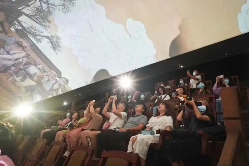 仰头观看球形荧幕,带你全方位体验汴河沿岸的风景。整个全景影片采用一镜到底的技术手法实现,将散点透视的原作画面还原成视觉上可移动的立体空间,带领大家从黄昏日落到华灯初上,体会“两岸风烟天下无”的繁华盛世。