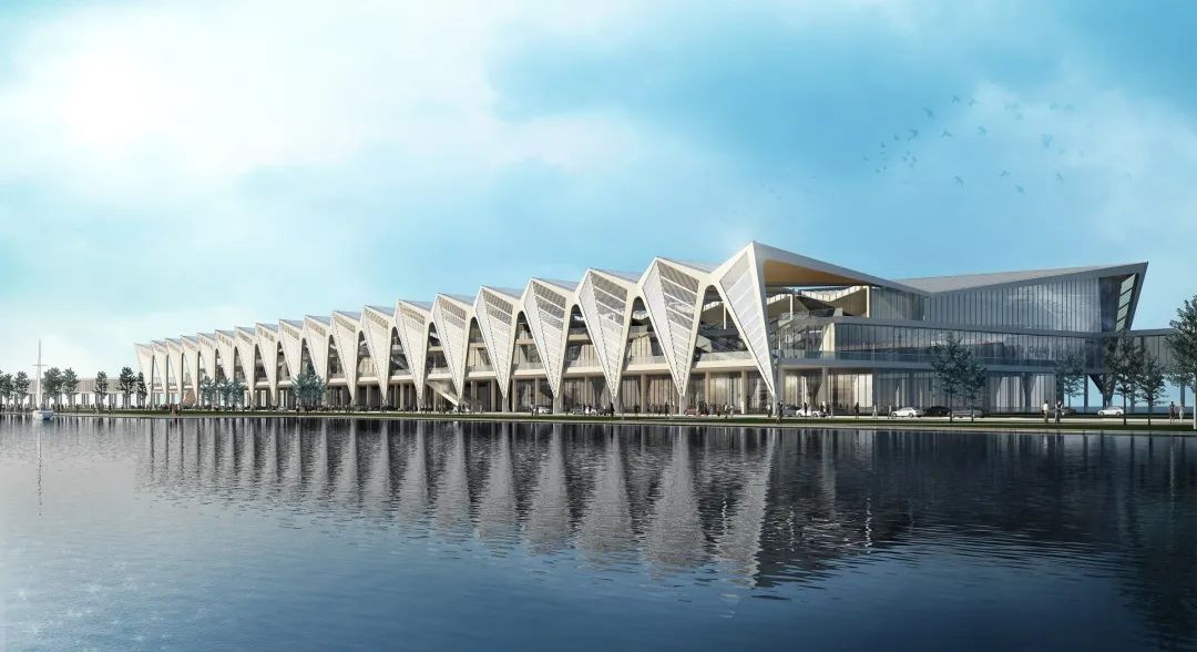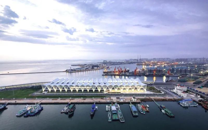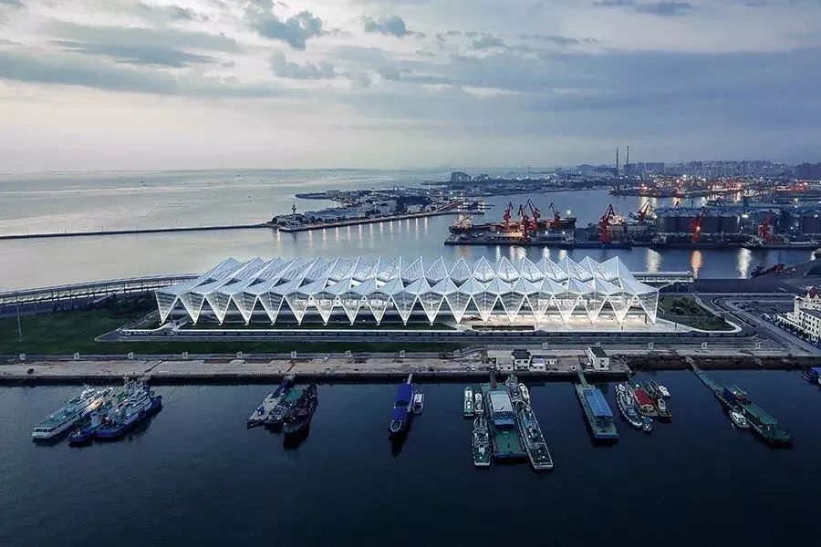 青岛邮轮母港建筑造型的灵感,来源于帆船之都的“帆”和青岛历史建筑连绵的“坡屋顶”,18个钢结构组成的风帆像翅膀一样向海边延伸。