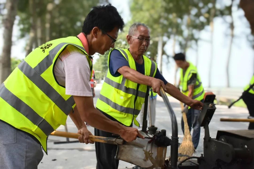 7月29日上午11时,烈日当空,地表温度显示已达40度。在省道310双柳树-蓼兰段,我市2020年度普通国省道路面小修工程施工现场,20余名肤色黝黑的公路养护人员穿着工作服、戴着防护手套,坚守岗位,沿线劳作。