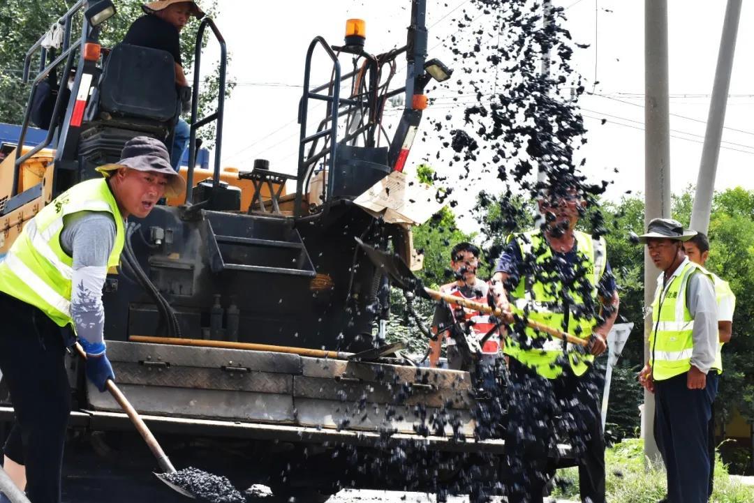 压路机轰鸣作响,刚刚摊铺在地上的沥青混合料还向上冒着热气,记者刚一靠近,一股热浪便迅速从脚底冲上头顶,热气瞬间包裹全身,如同进入了桑拿房一般,汗珠霎时间就从额头上滴了下来。“沥青混凝土拌合料在到达施工现场时候一般在150度左右,摊铺时候温度在130度左右才可以保证正常摊铺,更好地保障路面压实效果。气温一低,沥青还没有铺好都已经硬了,不能保证质量,所以工人们也只能顶着烈日,伴着地面‘炙烤’进行工作。”市公路事业发展中心路面小修项目负责人贾俊超解释道,这条道路车流量大,而维修这些路面“病害”只能趁晴好天气进行,所以越是炎热晴朗的天气越是公路养护工人最忙、最辛苦的时候。