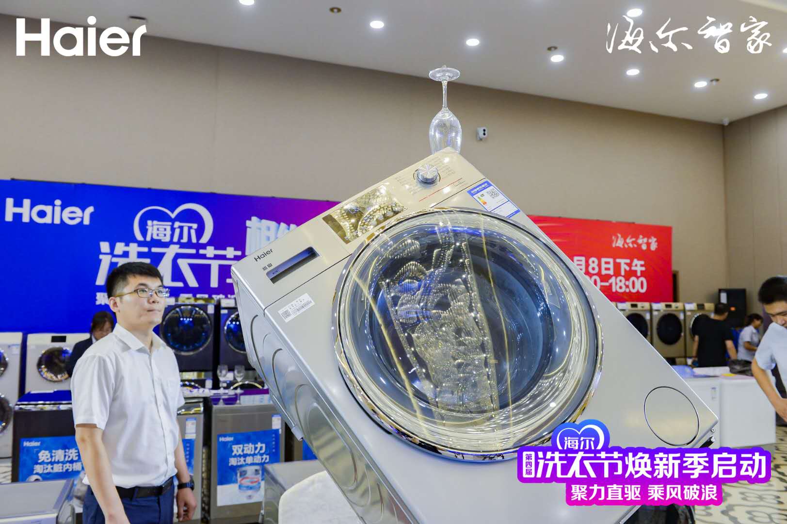 在洗衣节启动现场,直驱洗衣机的安静平稳特点得到全新展示。相比于传统皮带洗衣机噪音大的问题,搭载直驱电机的洗衣机,能够直接驱动内筒1:1转动,动力更强劲,洗涤更安静,在晚上洗衣服也不用担心吵到家人睡眠。自2012年推出全系列直驱洗衣机后,海尔直驱洗衣机已经进入全球1550万用户家庭。