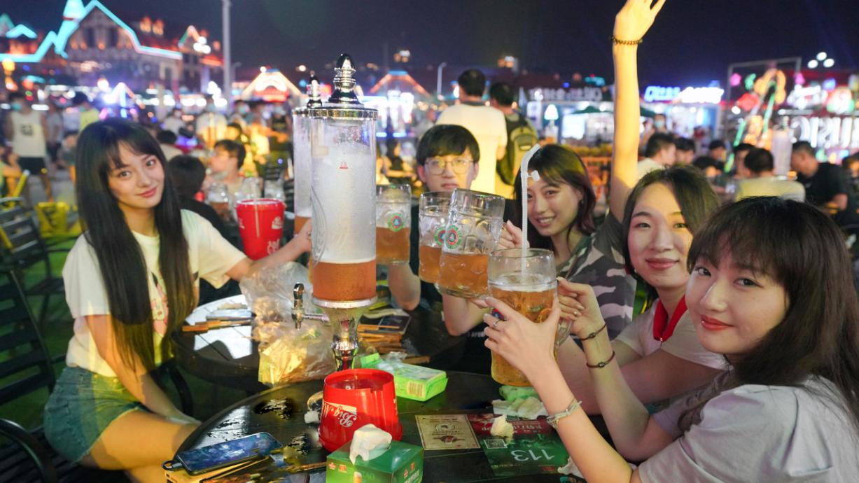 以营口为例,为期10天的第六届营口青岛啤酒节是青岛啤酒文化夜市的一个组成部分。从7月中旬到10月8日,这一主题文化夜市不仅为消费者搭建了青岛啤酒花园,还集聚了20多个当地品牌商户组成了文化夜市,涵盖餐饮、后备箱小集市、汽车等业态,打破了城市现有消费格局。