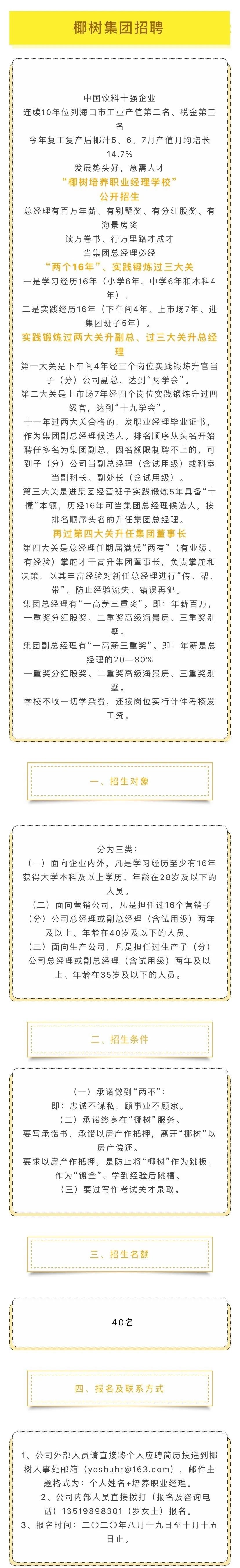 椰树集团发布招聘信息“椰树培养职业经理学校”公开招生(图据南海网)