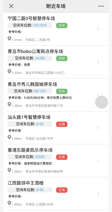 (“宜行青岛”公众平台整合车位信息提供线上服务)