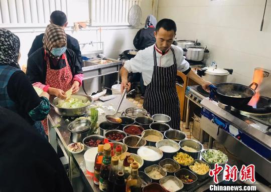 图为一名摊主给顾客摊饼。洪坚鹏摄