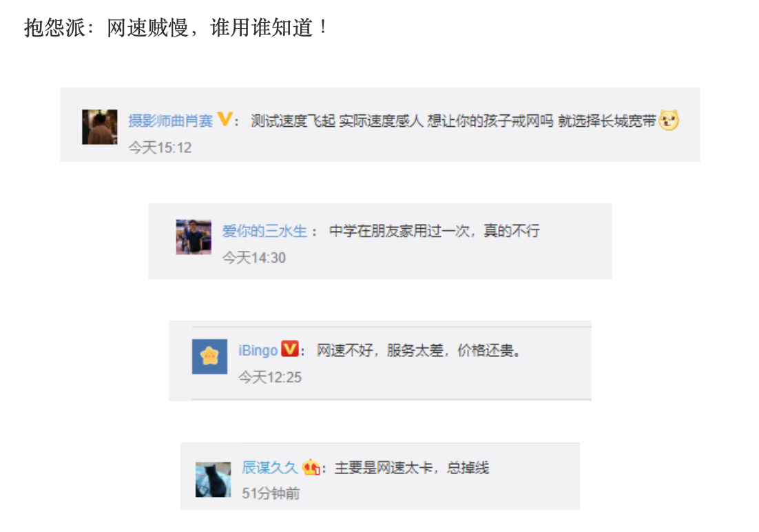 抱怨派:网速贼慢,谁用谁知道!