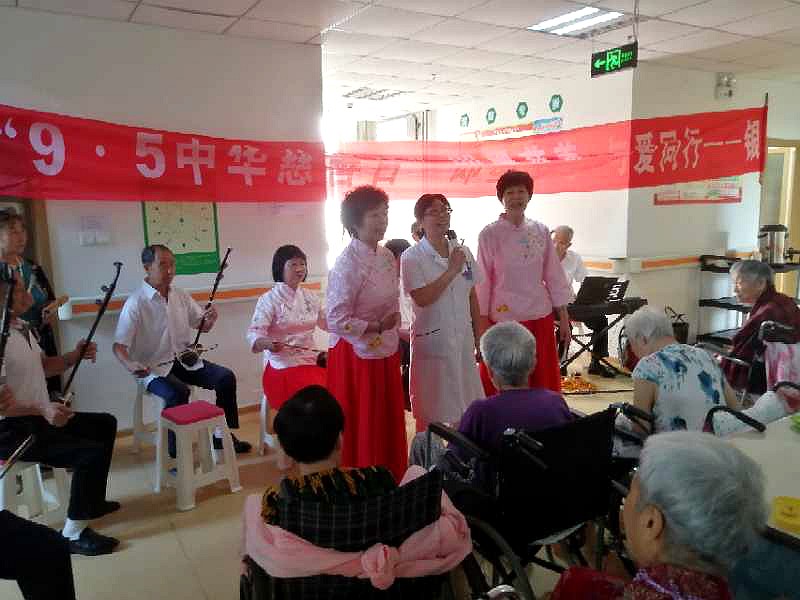 为庆祝第五个“中华慈善日”,即墨银华民乐团组织开展了“夕阳颂”慰问演出。2020年9月3日上午,乐团来到华益德护养院慰问演出,受到院长和老人的热烈欢迎,特别是演员们和院长同台唱《妈妈的吻》时,台下老人热泪盈眶。