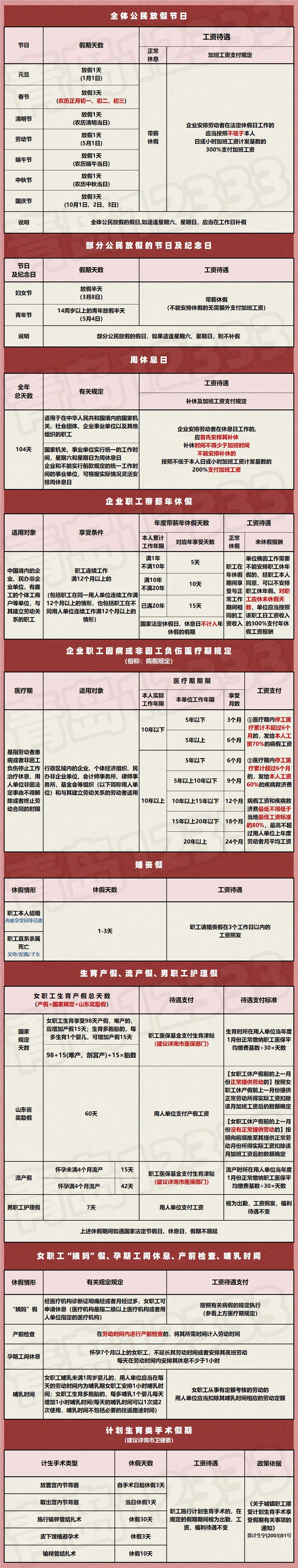 各类假期汇总帖!附工资发放标准!